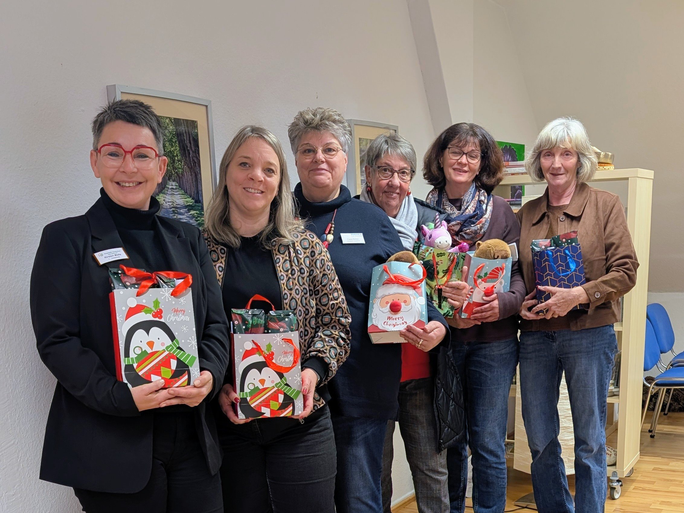 Über das Engagement und die gelungene Aktion freuten sich Kirsten Malle, 1. Vorsitzende der Hospizhilfe Nordenham und umzu e. V., sowie die Koordinatorin Verena Hilker ebenso wie Frauke Renken, Koordinatorin des Ambulanten Hospizdienstes des Diakonischen Werks Wesermarsch, und die ehrenamtliche Hospizbegleiterin Waltraud Kahle. Stellvertretend für die engagierten Frauen überreichten Sabine Zinn und Christine Süßenbach als Mitinitiatorinnen der Aktion die Weihnachtstüten.